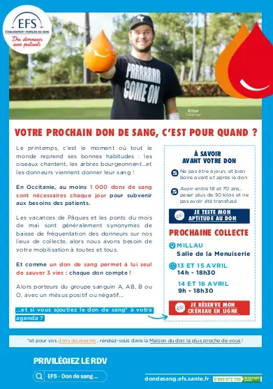 Il est recommandé de privilégier la prise de rendez-vous sur le site dondesang.fr afin de faciliter l’organisation.