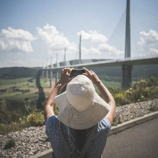 Au départ de l’aire du Viaduc de Millau, vous cheminerez sur le Sentier des Explorateurs jusqu’au belvédère. À l’ombre du tablier, vous entendrez passer les véhicules juste au-dessus de votre tête. Face à vous, le Viaduc de Millau et ses 7 piles en enfilade…